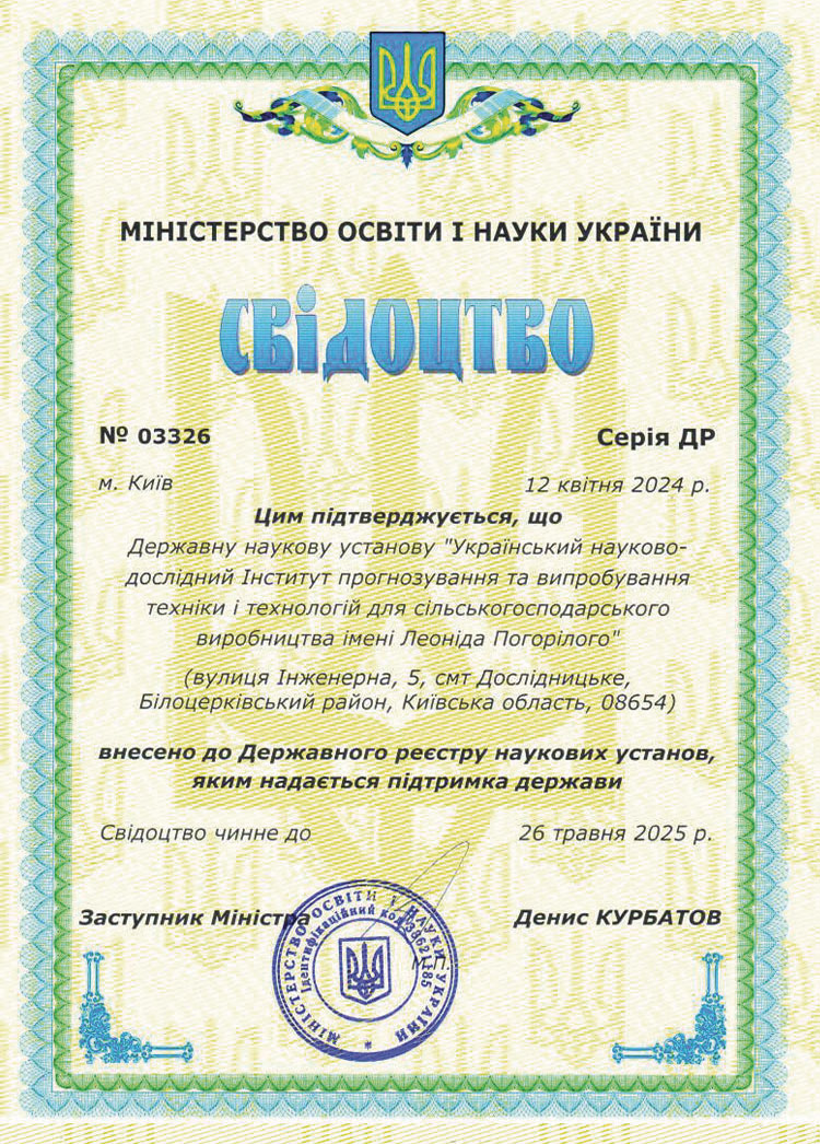 УкрНДІПВТ ім. Л. Погорілого атестований відповідно до наказу №945 від