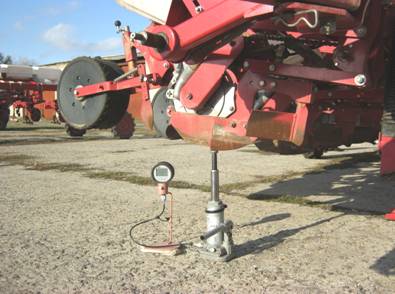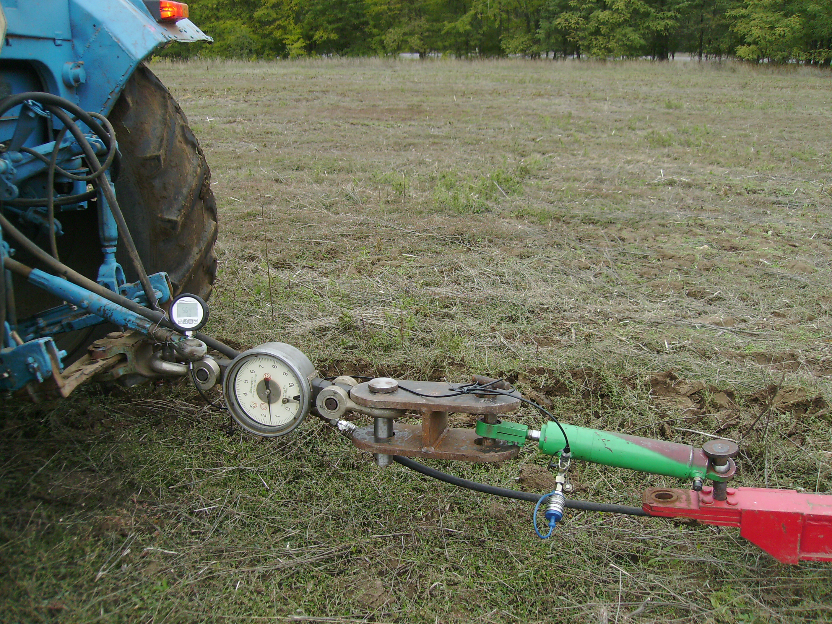 a) experiments on the use of ПВГ instruments to measure the working bodies pressing force on the ground (Fig. 9) and loading force of machine on coupling were conducted. It was determined that the use of ПВГ devices to measure these parameters enables the measurement by one person with significantly reduced energy costs and significantly improves the accuracy of measurement and provides measurement process;