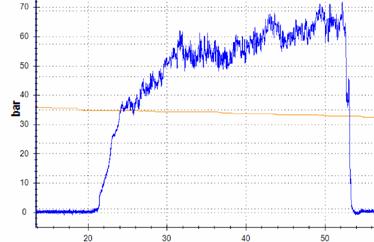Preliminary testing of a second sample (with sensor and electronic working fluid pressure dynamics logger) showed that it registers dynamics pressure of the working fluid in the device in digital form and with appropriate computer programs it is possible to depict this dynamic in tabular and graphical form (Fig. 13).