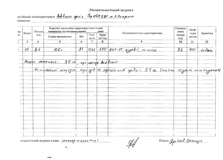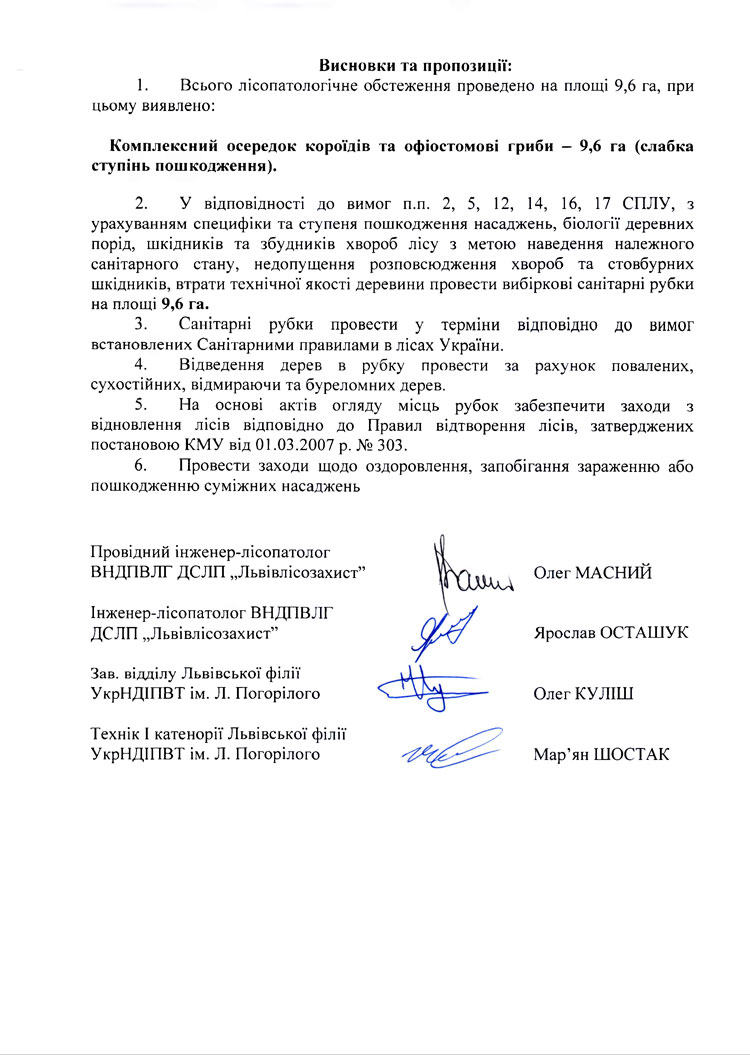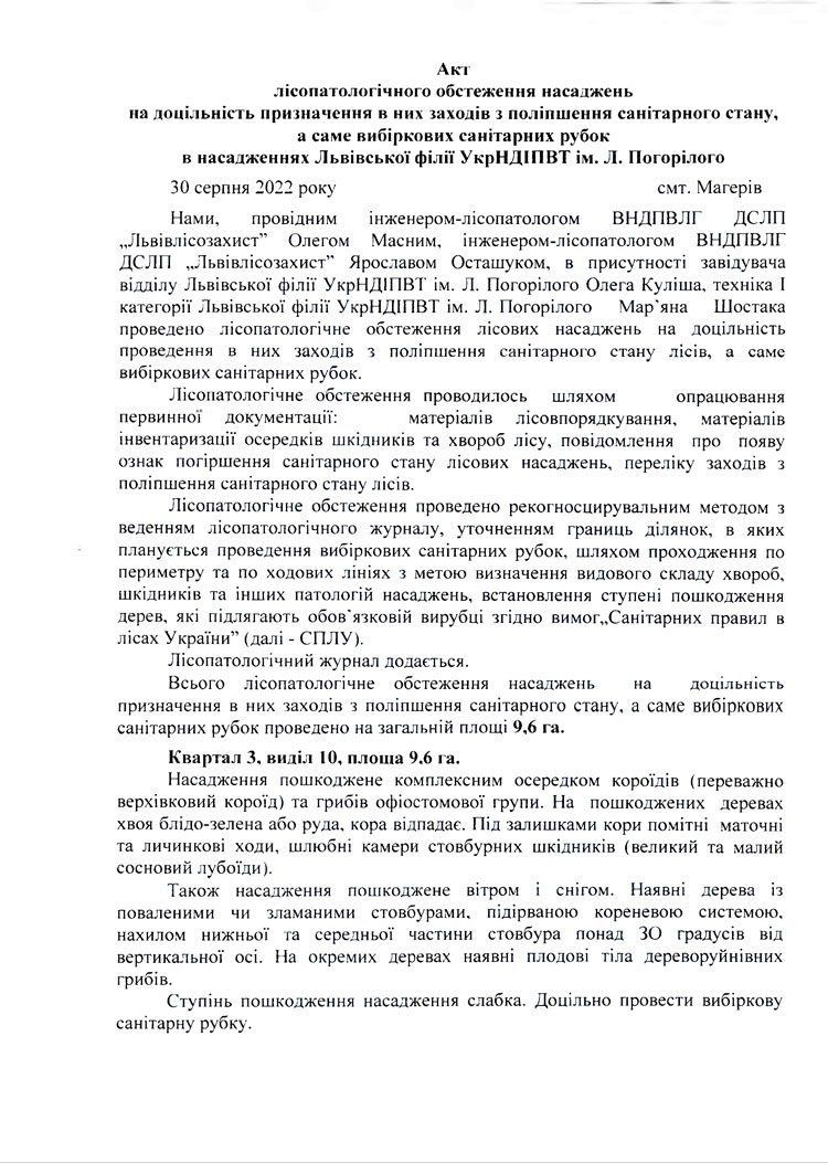 Акт лісопатологічного обстеження насаджень