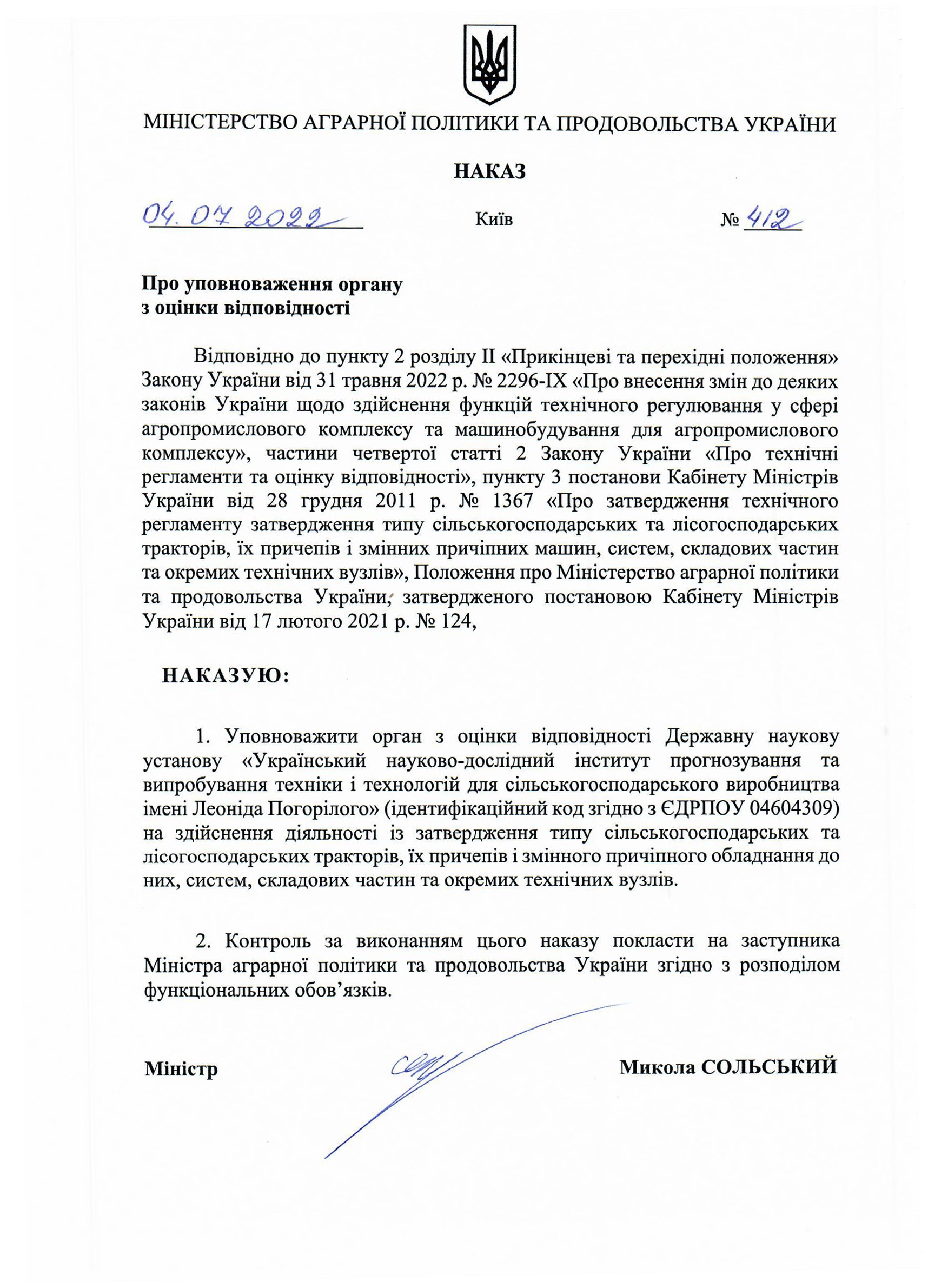 Дослідження, випробування технічних засобів, диверсифікація процедури машиновипробувань та розвиток технічної політики для АПК