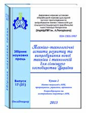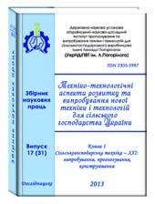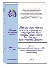 ТЕХНІКО-ТЕХНОЛОГІЧНІ АСПЕКТИ РОЗВИТКУ ТА ВИПРОБУВАННЯ НОВОЇ ТЕХНІКИ І ТЕХНОЛОГІЙ ДЛЯ СІЛЬСЬКОГО ГОСПОДАРСТВА УКРАЇНИ: Збірник наукових праць УкрНДІПВТ ім. Л. Погорілого. – 2012. – Вип. 16 (30), кн.1. – 500 c