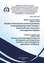 ТЕХНІКО-ТЕХНОЛОГІЧНІ АСПЕКТИ РОЗВИТКУ ТА ВИПРОБУВАННЯ НОВОЇ ТЕХНІКИ І ТЕХНОЛОГІЙ ДЛЯ СІЛЬСЬКОГО ГОСПОДАРСТВА УКРАЇНИ: Техніко-технологічні аспекти розвитку та випробування нової техніки і технологій для сільського господарства України: збірник наук. пр. / ДНУ «Український науково-дослідний інститутпрогнозування та випробування техніки і технологій для сільськогосподарського виробництва імені Леоніда Погорілого» (УкрНДІПВТ ім. Л. Погорілого); Редкол.: В. Кравчук (голов. ред.)та ін. – Дослідницьке, 2017. – Вип. 21 (35). – с., іл. – Бібліогр. в кінці ст.