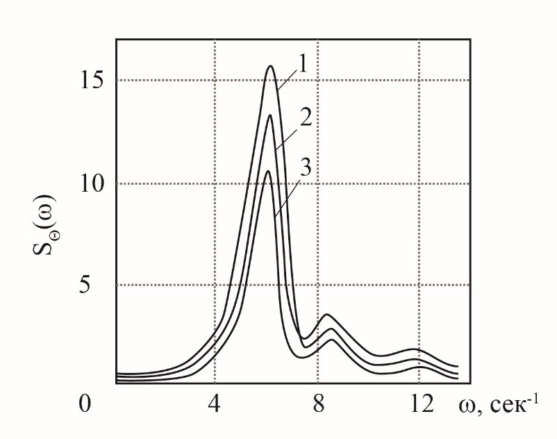 Енергетичний амплітудний спектр вимушених поздовжньо-кутових коливань корпусу тягача \(S_{\Theta}(\omega)\):