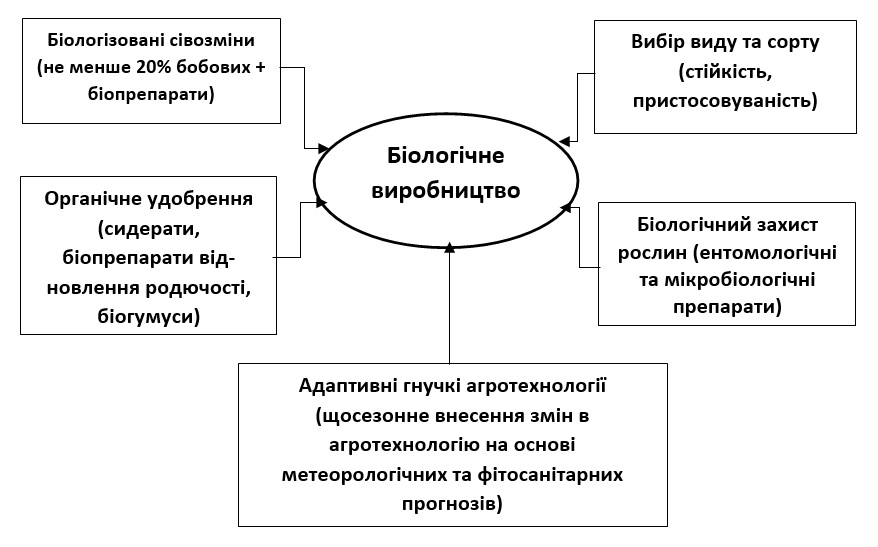 Рис. 1 – Схема основних складових інтенсифікації біологічного агровиробництва