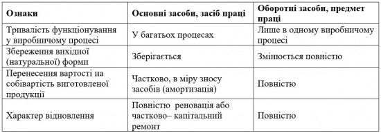 Таблиця 1 – Ознаки основних і оборотних промислових засобів