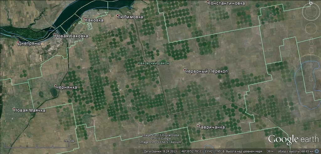 Рис 1 – Зрошувані землі Каховського магістрального каналу в межах Каховського району.