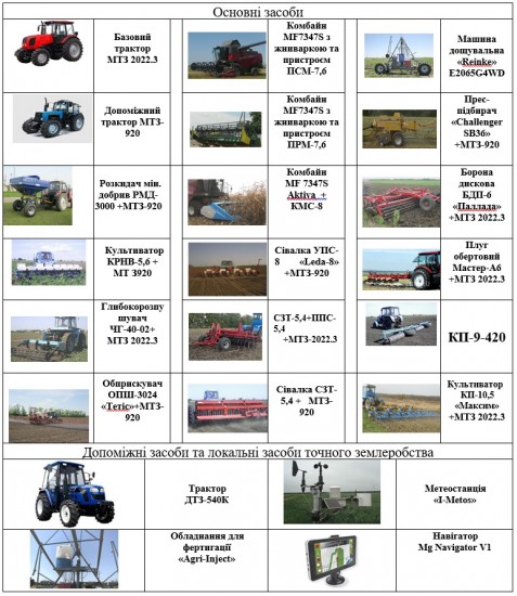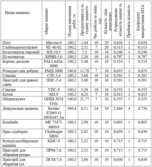 2 Визначено склад МТП для забезпечення ефективного виробництва товарної продукції рослинництва, а саме створення та експлуатації оптимального за складом та достатнього для забезпечення агротехнологій машинно-тракторного парку.