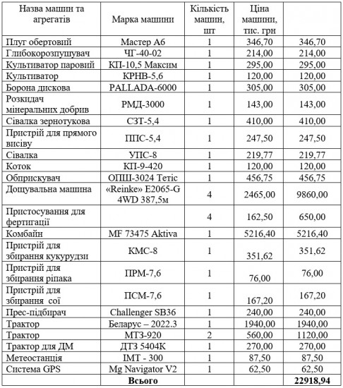 - creation and operation of an optimal machine-tractor park, sufficient for providing agricultural technologies;