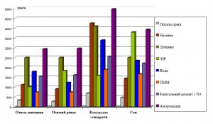 Рис.2 - Питомі прямі експлуатаційні витрати на вирощування с.-г. культур у сівозміні