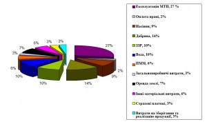 Структура загальних витрат на вирощування сільгоспкультур у сівозміні наведена на рисунку 4.