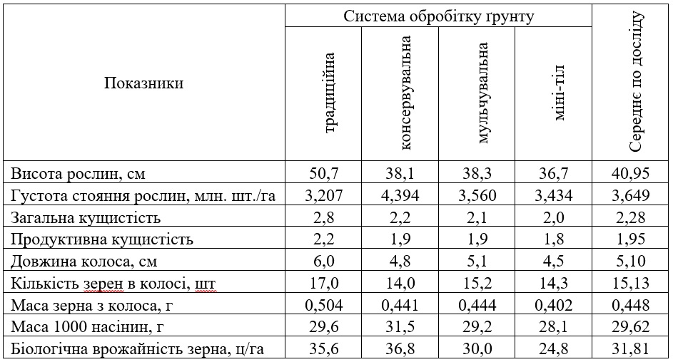 Таблиця 3. – Біологічна врожайність ячменю ярого та її структура за різних систем основного обробітку ґрунту, 2017 р