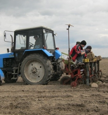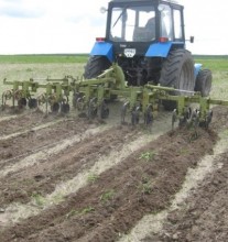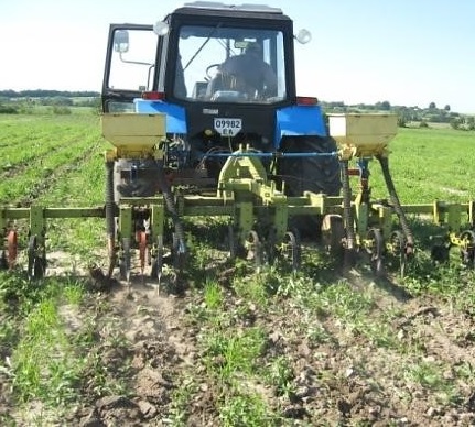 За період вегетації проведено чотири обробітки міжрядь з використанням переобладнаного та доопрацьованого культиватора Р-440 (рис. 1 б). Протягом першого року вегетації проводилось прикореневе підживлення рослин мінеральними добривами (нітроамофоска в дозі 250 кг/га). Для внесення добрив застосовувався культиватор-рослинопідживлювач розроблений на базі міжрядного культиватора (рис. 1 в).
