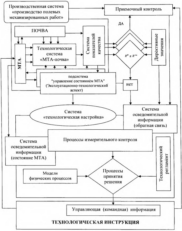 Согласно представленной схеме основным процессом системы производства полевых механизированных работ является процесс функционирования технологической системы «МТА–почва». В результате этого осуществляется конкретная технологическая операция, например, обработка почвы, посев, уборка сельскохозяйственной культуры и т.п.