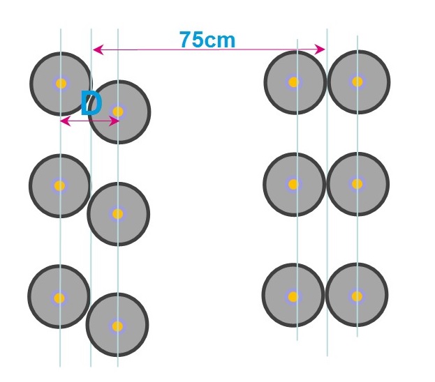 Рисунок 1 – Схема укладання насіння при широкорядній сівбі культур: