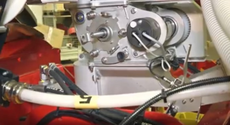 Сівалка Azurit 9 (рисунок 7 а) з секцією обладнаною котушкою для синхронізації укладання насіння для здвоєного рядка за допомогою системи Delta-Row.