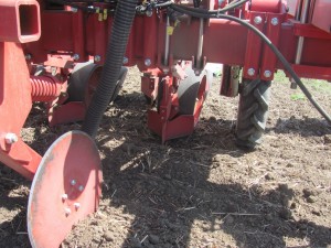 Система Sunc-Row синхронізує дві котушки в сусідніх висівних секціях здвоєних рядків для правильної укладки насіння в шаховому порядку.